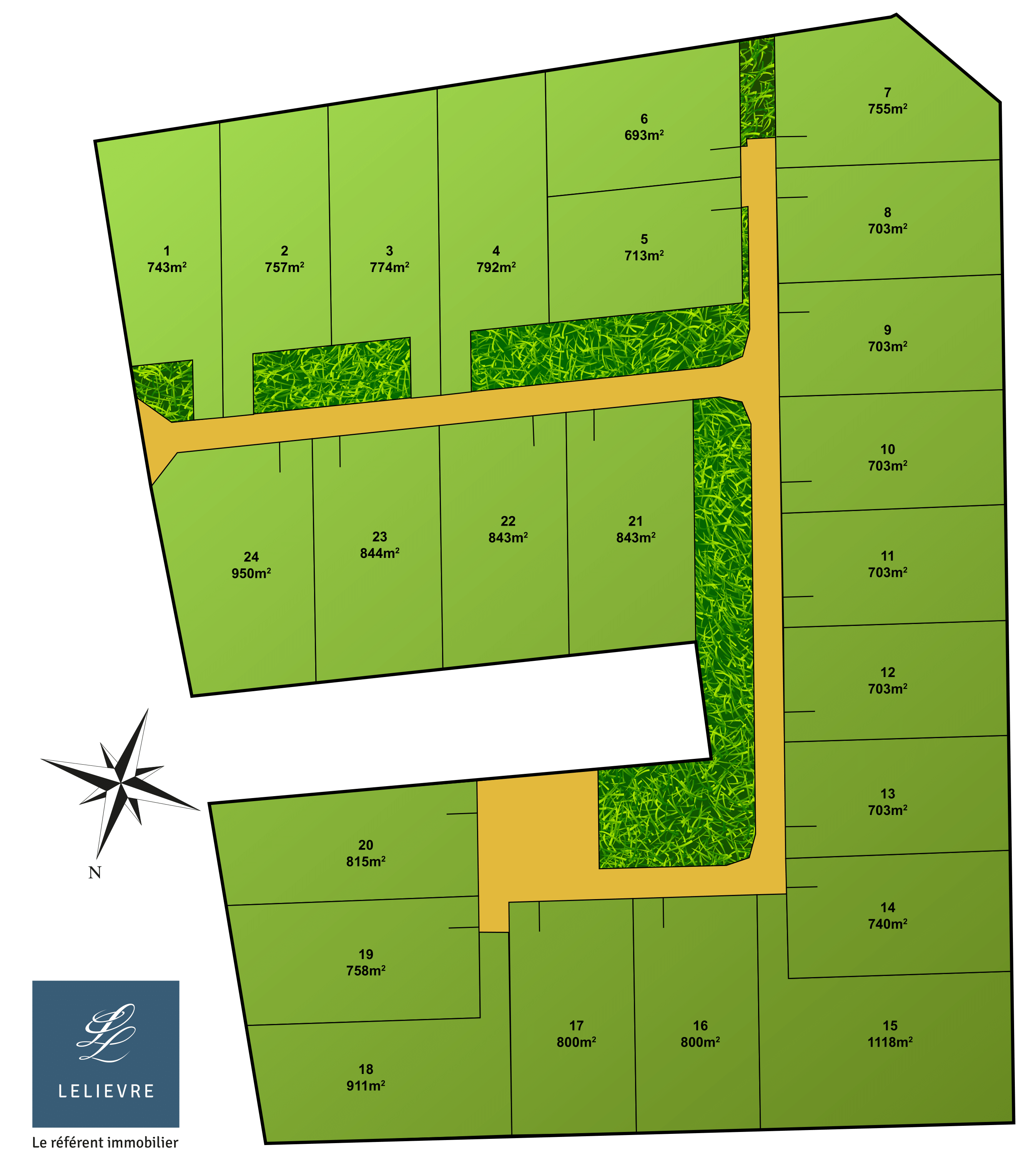 - Des parcelles spacieuses de 703 à 1100 m² pour concevoir la maison de vos rêves.